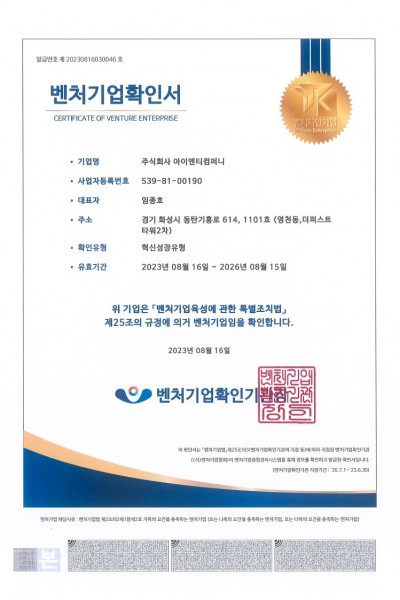 [벤처기업확인서] 2023.08.16