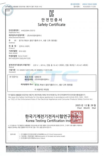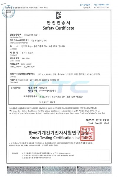 [전기안전인증서] IFH1230 외 파생모델 (25.12.29)