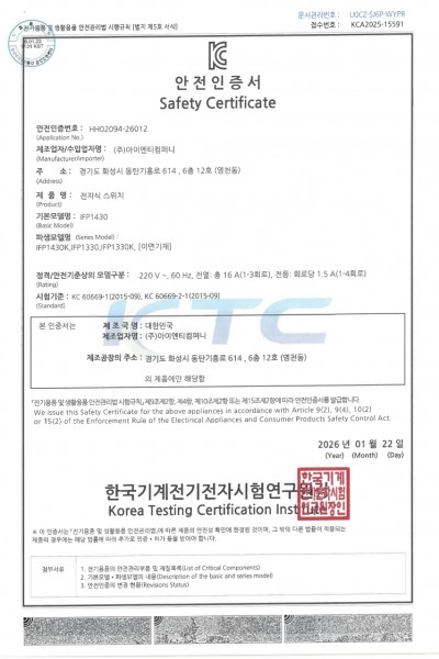 [전기안전인증서] IFP1430 외 파생모델 (26.01.22)
