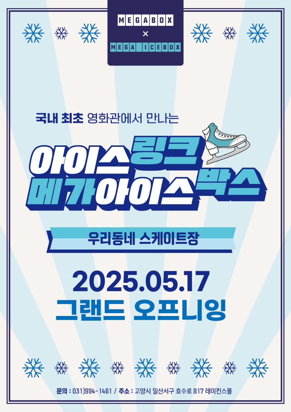 메가 아이스 박스 (킨텍스점) 오픈 페이지 정보 작성자 최고관리자 댓글 0건 조회 4,810회 작성일 25-06-17 09:02 목록 게시판 리스트 옵션 검색 본문 킨텍스 메가 아이스박스 링크장 오픈~~~~국내 최초 극장안 아이스 링크가 오픈했습니다. 단체강습 개인강습 모든 스케이트 종목 교육이 가능한 링크 입니다. 문의전화 031-994-1461 인스타 그램 ( 메가 아이스 박스) 댓글 0 댓글목록 등록된 댓글이 없습니다. 목록
