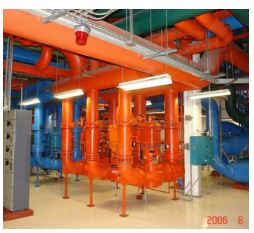 1975년 준공된 카나다 토론토 1번지빌딩 기계실(Canadian 1st Bld Machine room )에 초창기에 설치된 암스트롱 수직