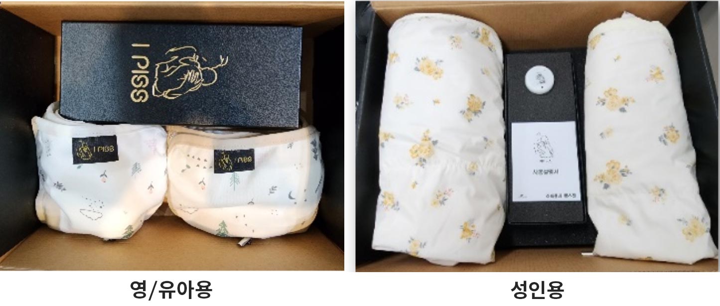 | Model : 아이피스(IPISS) ▷ 기저귀가 젖었을 때 기저귀 커버에 부착되어 있는 측정기 내부의 감지(습도)센서를 통해 스마트 폰(스마트 앱)에 실시간으로 알려주는 제품 ▷ 제품 구성 : 기저귀커버, 측정기, 스마트 앱 주요 특징 ▷ 자체 개발한 감지( 온·습도)센서 적용 ▷ 천 기저귀 및 일회용 패드 모두 사용 ▷ 실시간으로 기저귀 상태 정보 제공 ▷ 기저귀 착용자의 상태를 실시간 모니터링 기능 |