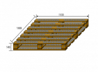 1100 mm X 1100 mm 파렛트는 상판 7~9개, 각재 3~4개, 하판 3~5개로 이루어진 견고한 Pallet 입니다.