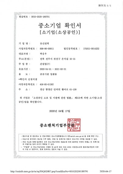 중소기업확인서