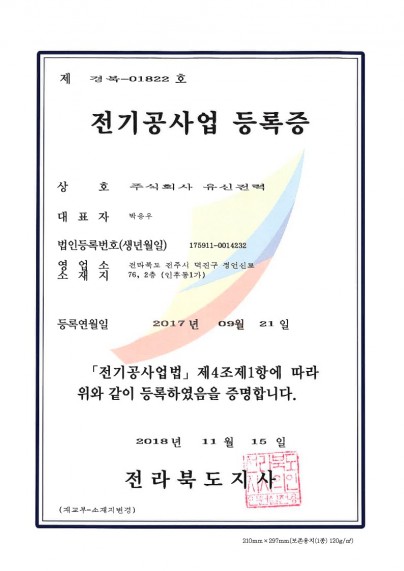 전기공사업등록증