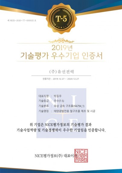 우수기업 인증서