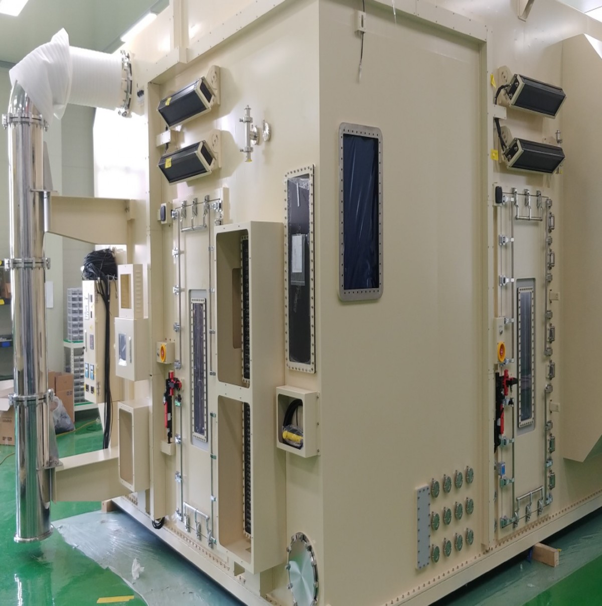 Display 전공정에서 밀폐 공정을 전 산화방지를 위해서 N2 환경의 공정조건을 제공하여 기밀한 밀폐와 균일한 내부 기류를 유지하기 위한 설비