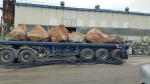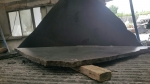 현무암원석을 판재로 가공하는 과정과 가공완제품을 sh공사 세곡2보금자리현