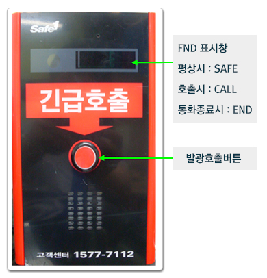 비상사태 발생시 비상폰의 비상버튼을 누르면 방재실 및 관리실로 긴급상황을 통보하고, 관제센터의 모니터에는