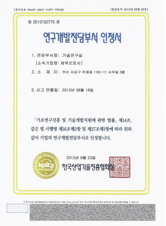 연구개발전담부서 인정서