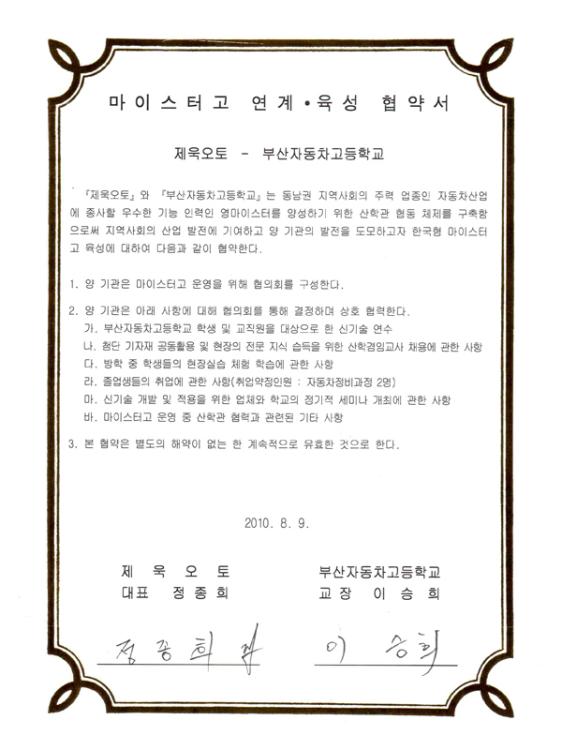 마이스터고 연계,육성 협약서