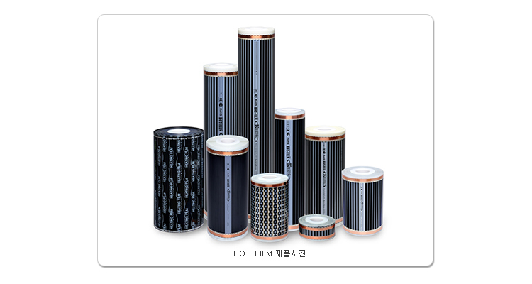 Hot-Film의 개요Hot-Film은 절연 및 난연 소재의 페트(PET)필름에 전기적으로 도체인 탄소발열체(Carbon Paste)와 실버페이스트(Silver Paste)를 도포하고, 동박으로 전극을 만든 후 라미넥스 필름(Laminex Film)을 합지한 최첨단의 미래지향적인 바닥 및 천장, 벽면 난방재입니다.