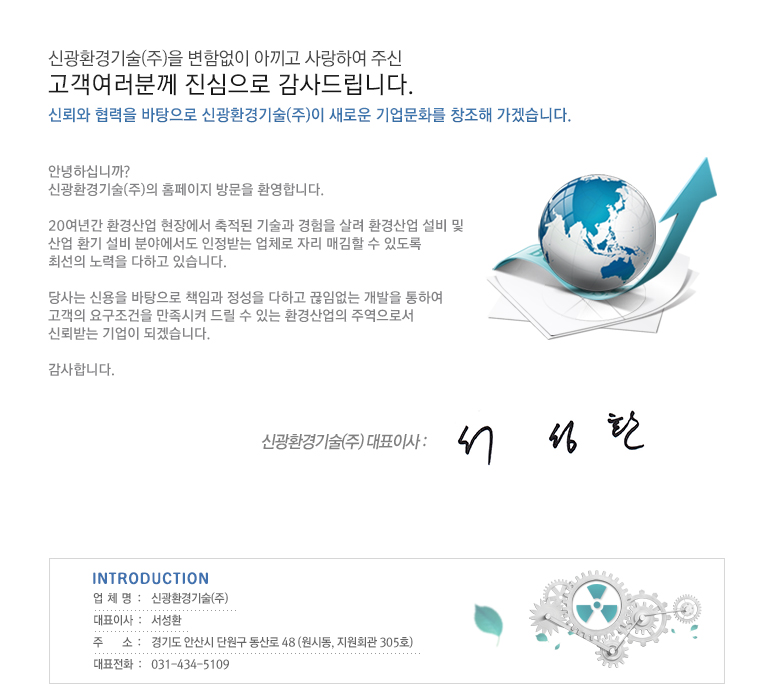 업체명 : 신광환경기술(주)|대표이사 : 서성환|주소 : 경기도 안산시 단원구 동산로 48 (원시동, 지원회관 305호)