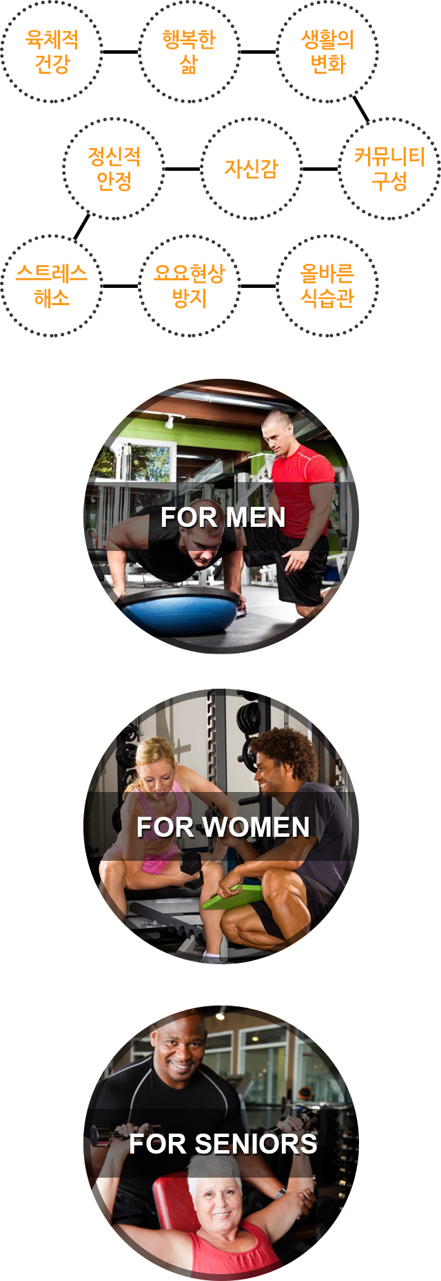 주기적인 적당한 운동은 신체적 건강과 정신적 안정을 도모하며, 급격한 체중변화에서 오는 요요현상을 방지시켜주며, 회원이 목표한 건강한 생활에서 오는 자신감과 클럽 동료회원과의 커뮤니티와 네트워크를 쌓을 수 있어 당신의 생활의 변화를 일으킵니다.