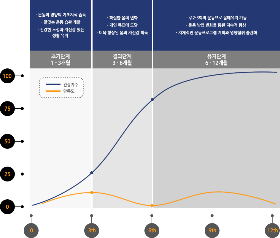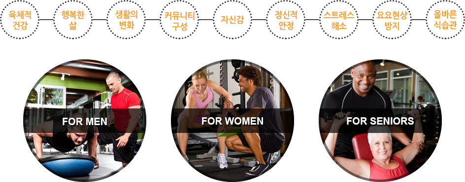 주기적인 적당한 운동은 신체적 건강과 정신적 안정을 도모하며, 급격한 체중변화에서 오는 요요현상을 방지시켜주며, 회원이 목표한 건강한 생활에서 오는 자신감과 클럽 동료회원과의 커뮤니티와 네트워크를 쌓을 수 있어 당신의 생활의 변화를 일으킵니다.