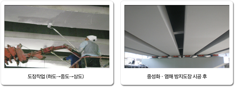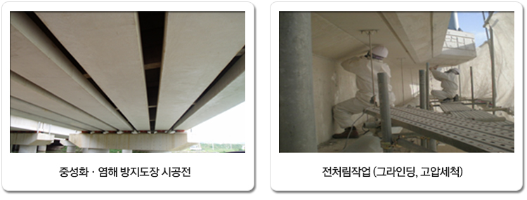 콘크리트 교량구조물 염해 · 중성화 방지 도장공법 적용 전 후 비교