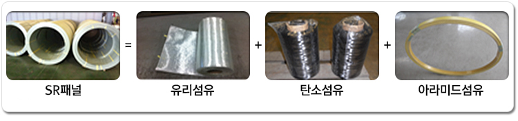 SR패널의 재료특성SR(Seismic Reinforcement) 패널은 고강성의 유리섬유와 고인성의 탄소섬유 및 아라미드 섬유를 융합(htbrid)한 것으로 구조보강 및 내진보강에 효과가 탁월하다.